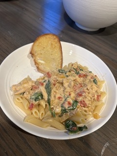 Dinner: Cajun chicken pasta (this recipe is so good with protein pasta!)– I’ll need to share my recipe for this one soon but it has bell pepper, chicken, milk, cream cheese, onion, garlic, and a bunch of seasonings! It was really tasty and I added some spinach to it as well.