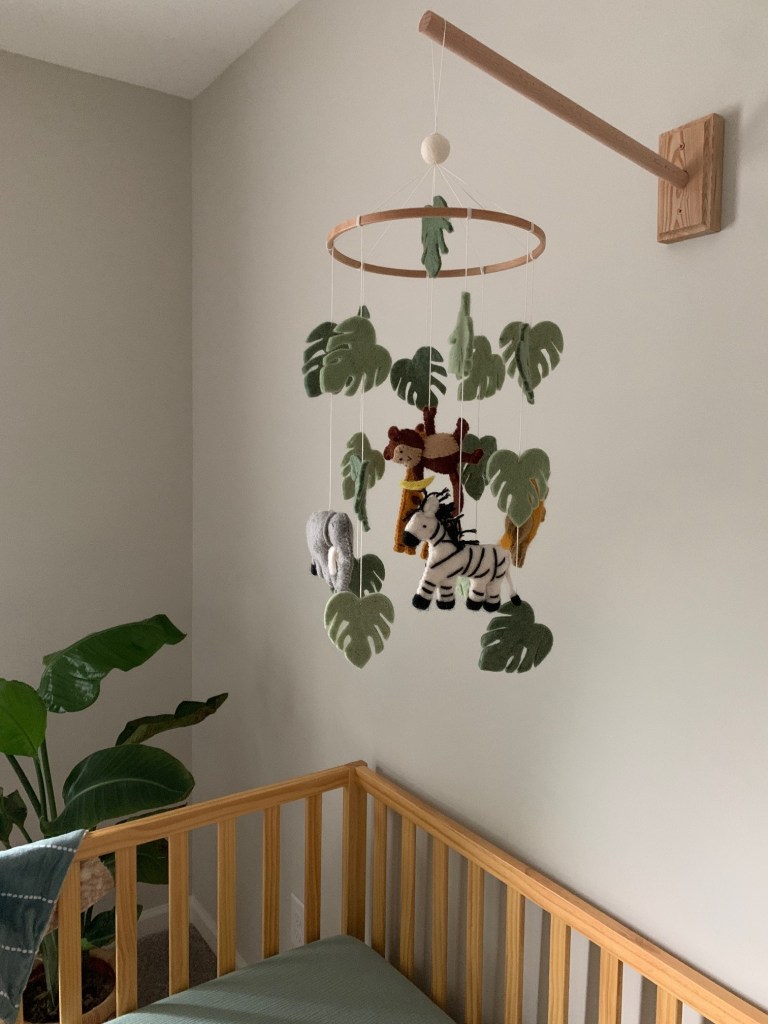 After writing my recent post about the DIY Giant Ruler Wall Art, I decided that I should probably share some photos of Theo’s nursery. The idea was to do with a jungle animals theme, but to keep it relatively minimal and simple overall. It all started with finding this cute jungle animals mobile, and we kind of went from there!